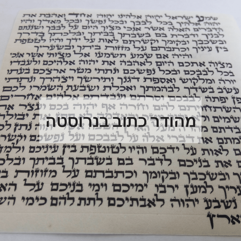 במכון ישורון אנו רואים בכתיבת המזוזה שליחות של קודש. כל המזוזות נכתבות על קלף משובח, תוך הקפדה על דרישות ההלכה בכל תג ותג. התהליך כולו מתבצע תחת פיקוח רוחני והלכתי צמוד, כאשר כל מזוזה עוברת הגהה כפולה: הגהת מחשב והגהה ידנית על ידי גברא (אדם), כדי להבטיח שביתכם מוגן במזוזה כשרה למהדרין ללא פשרות.